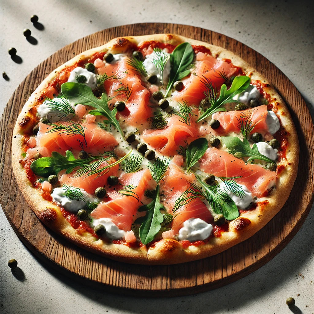 Pizza au Saumon Fumé, Fromage à la Crème et Câpres