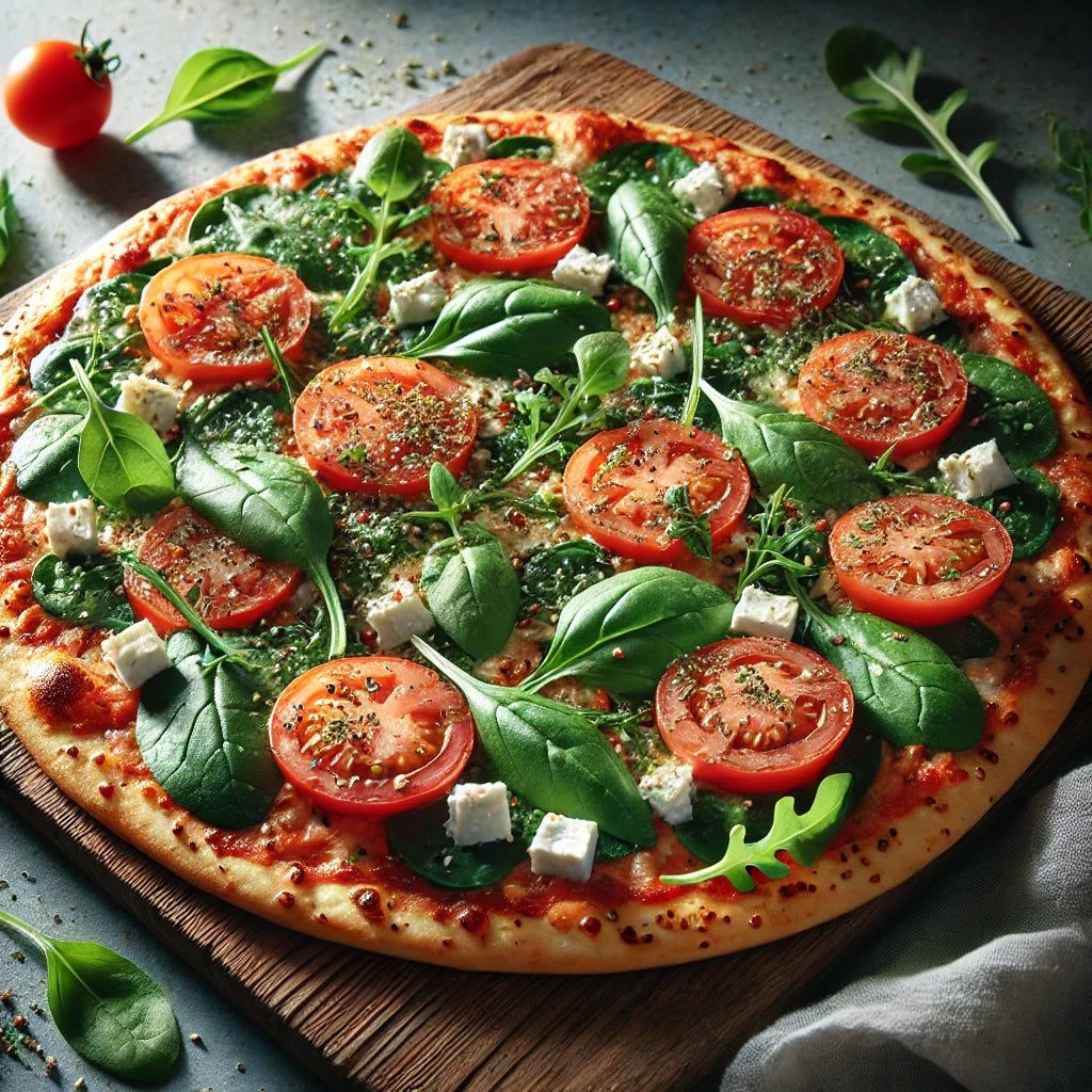 Pizza Méditerranéenne aux Épinards, Tomates et Feta